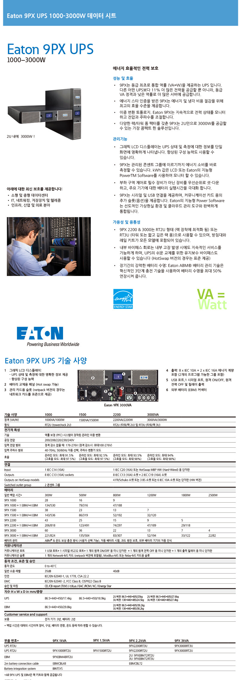9PX 1500i RT2U 1500VA 1500W 랙/타워겸용 온라인 이중변환 LCD 무정전전원장치