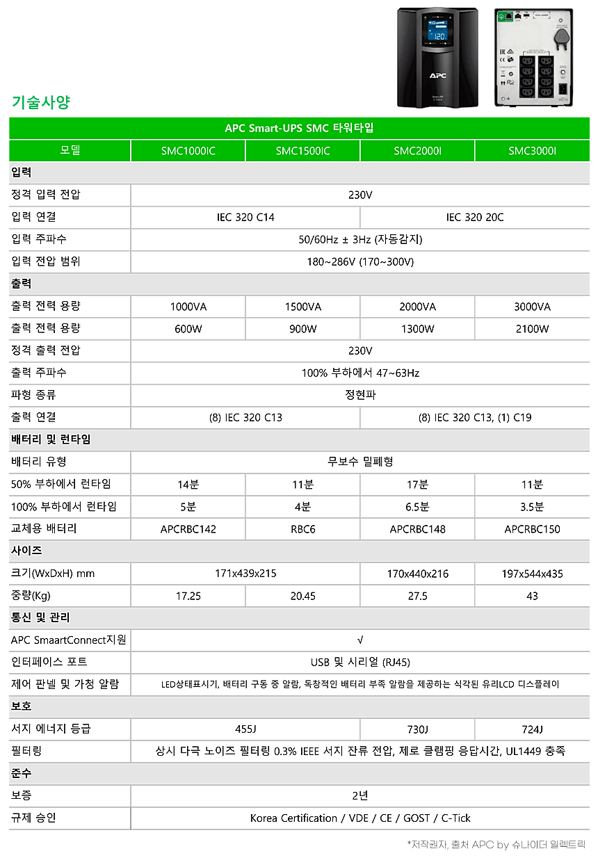 SMC1000IC Smart-UPS 1kVA 1000VA 600W 230V 타워타입