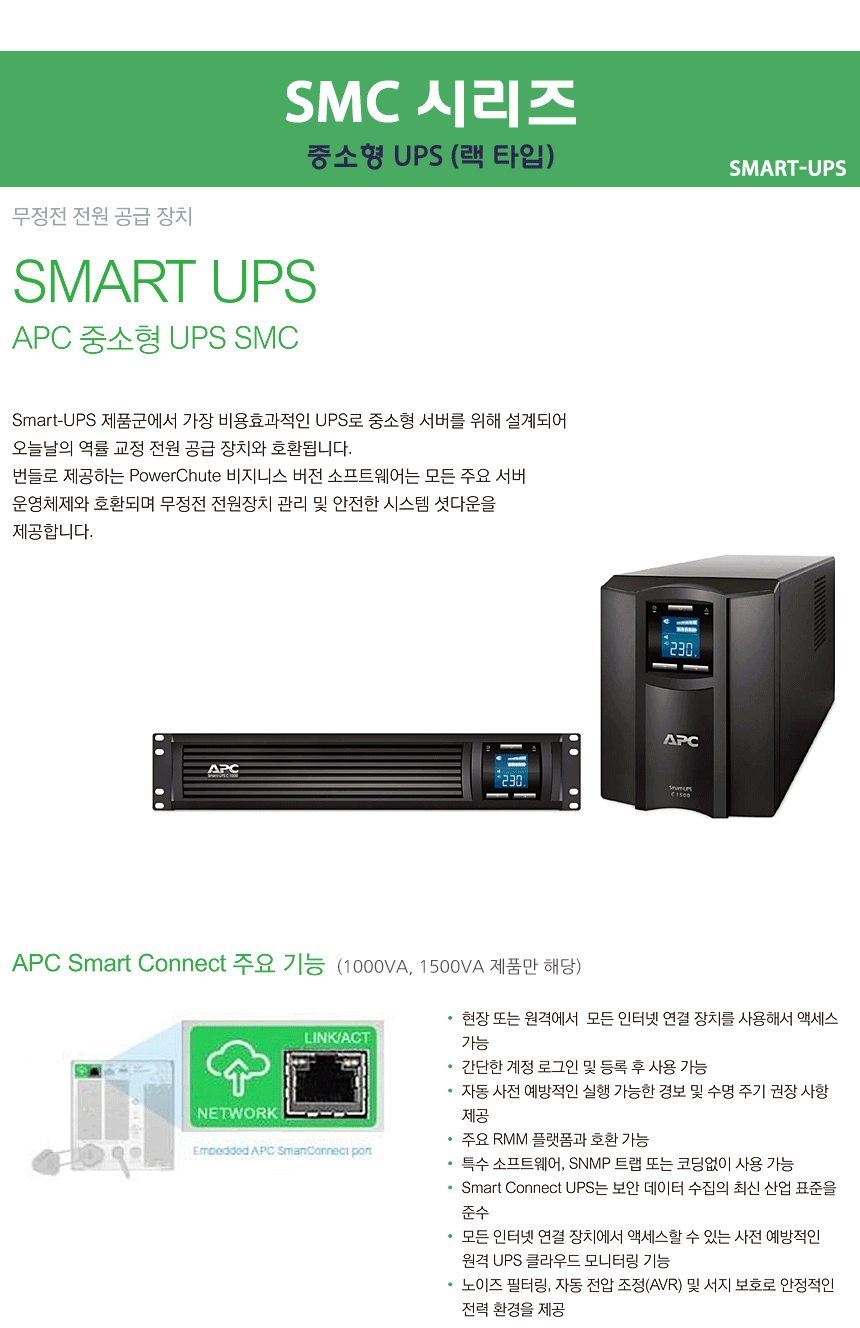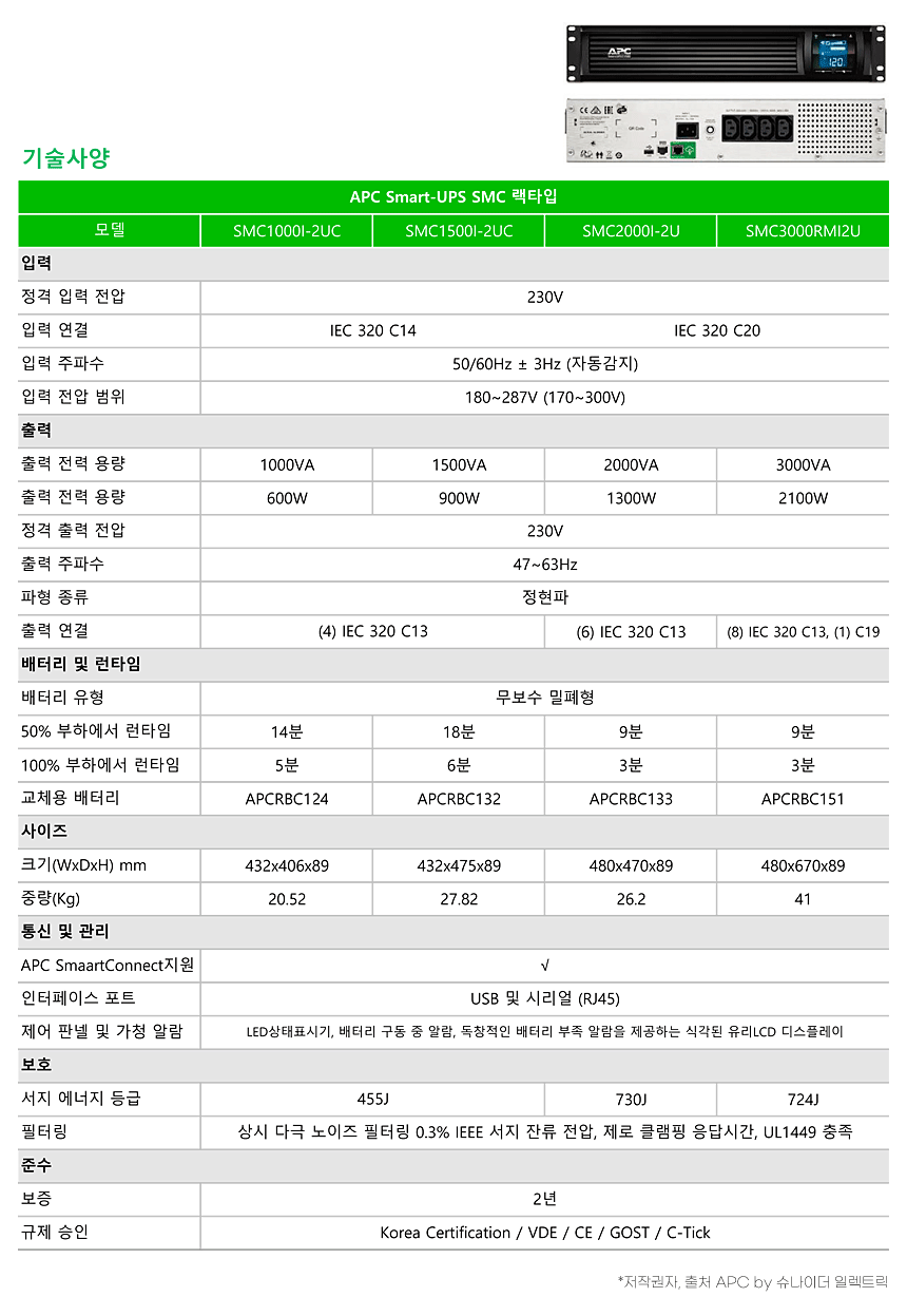 SMC3000RMI2U Smart-UPS 3kVA 3000VA 2100W Rack mount LCD 230V 랙타입