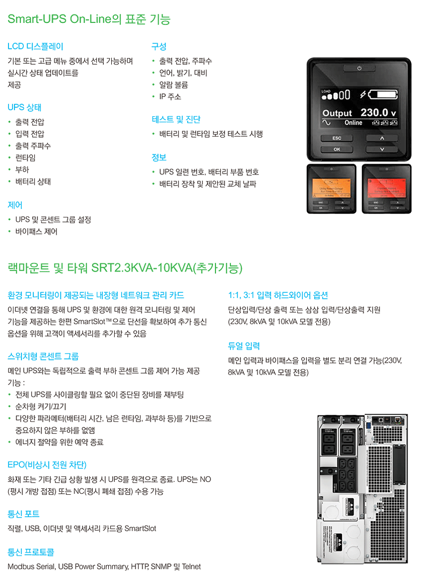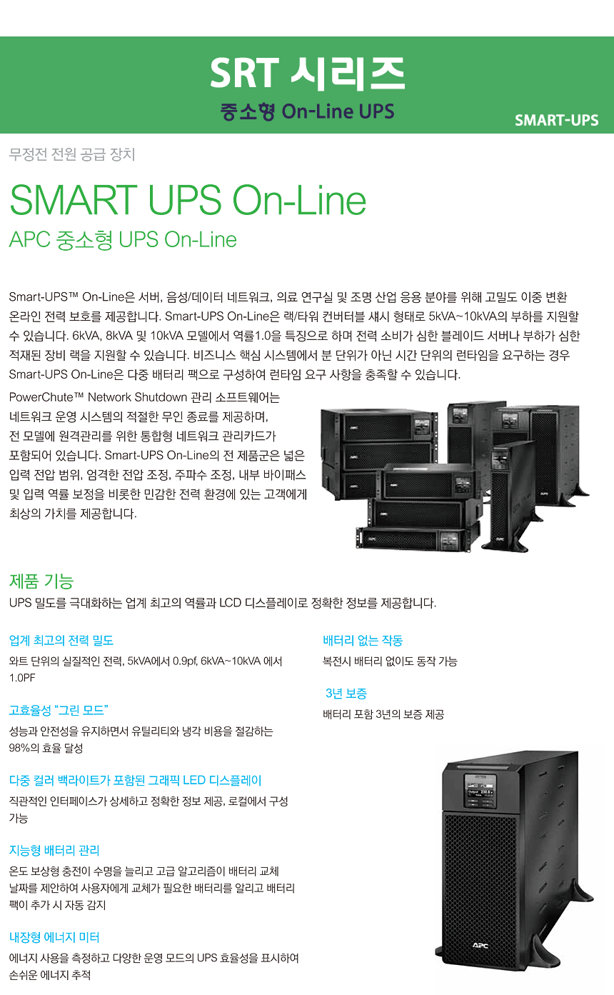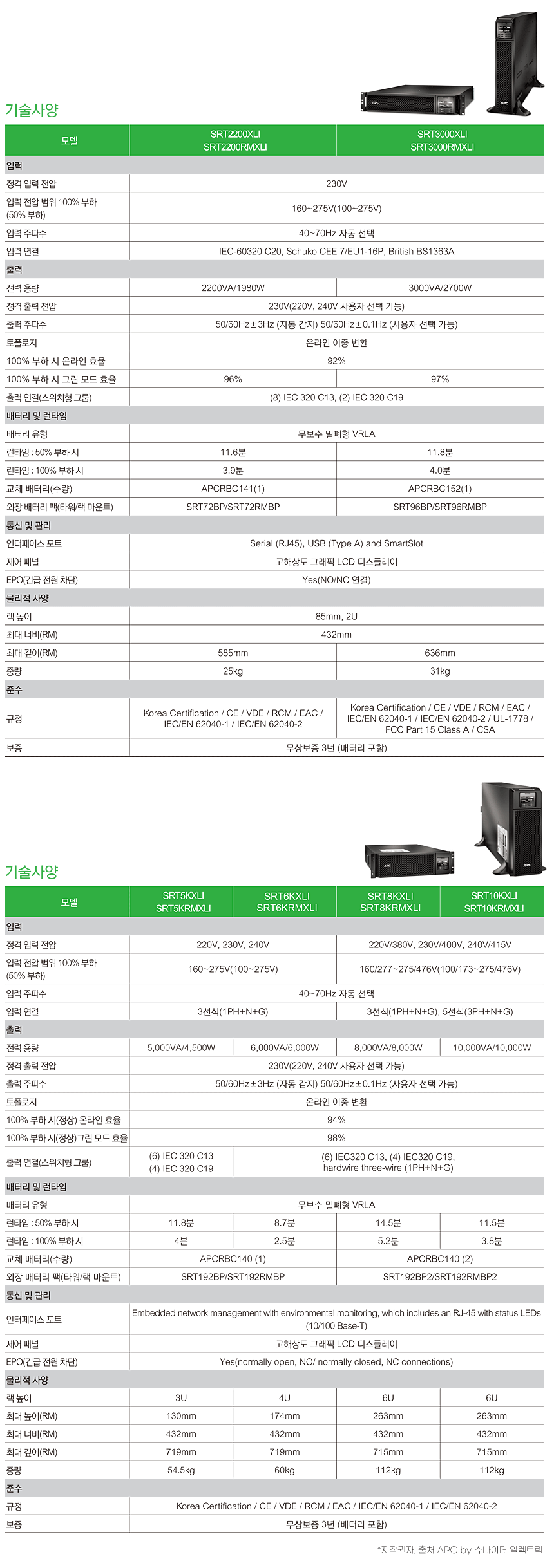 SRT6KXLI Smart-UPS SRT 6kVA 6000VA 6000W 230V 랙/타워겸용 이중변환온라인