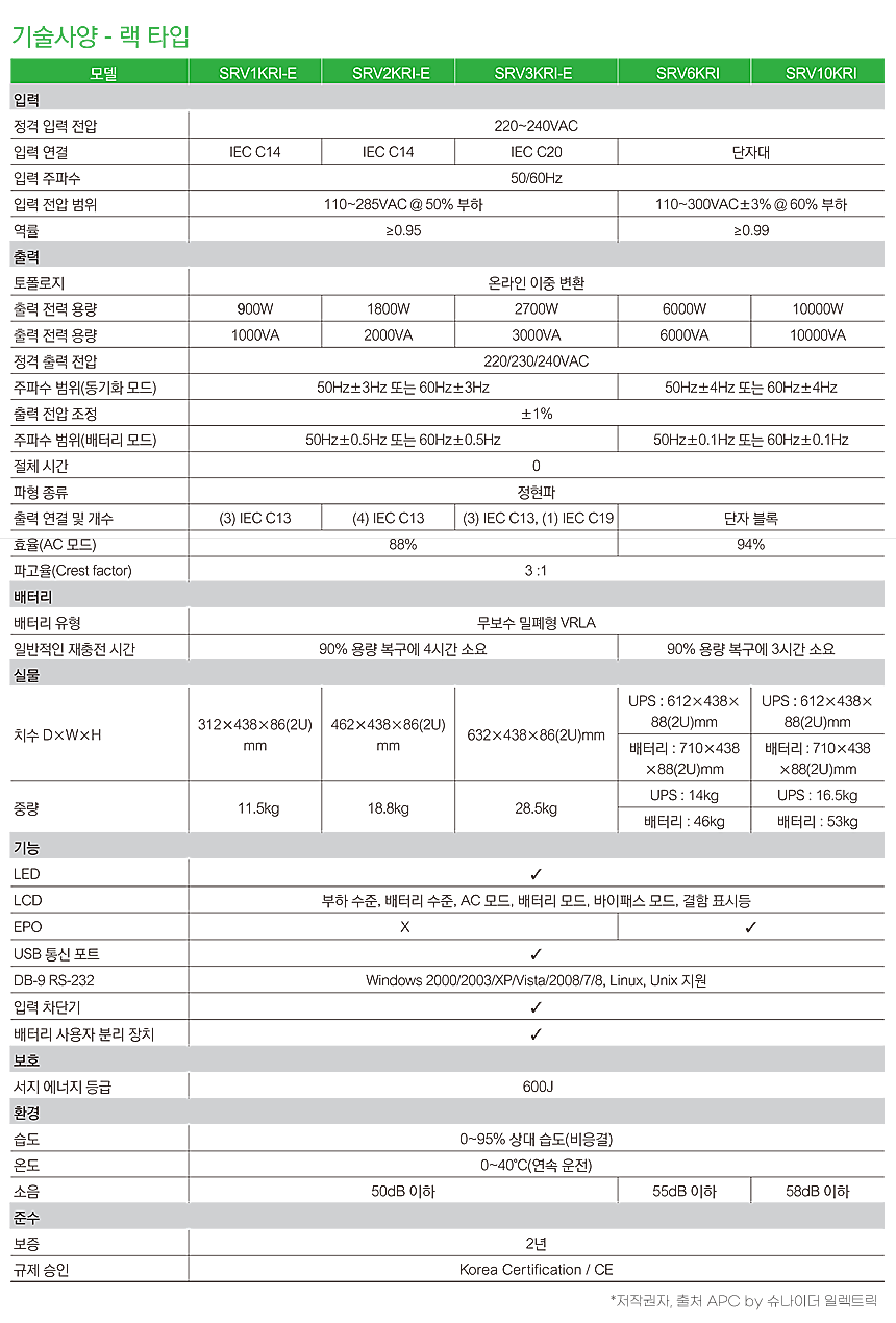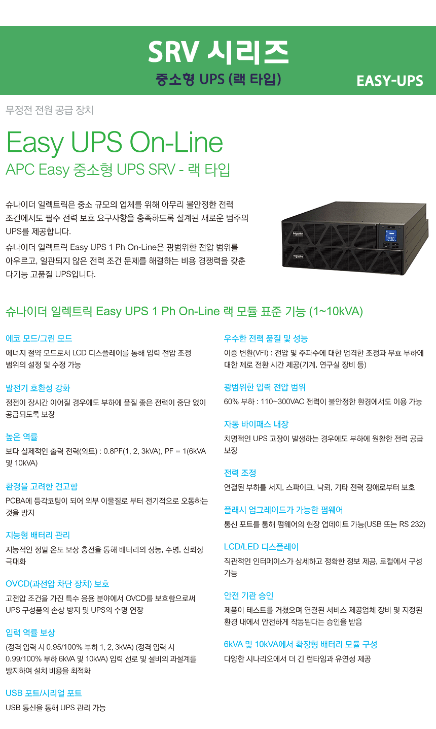 SRV10KRI EASY-UPS 10kVA 10000VA 10000W 230V 랙타입