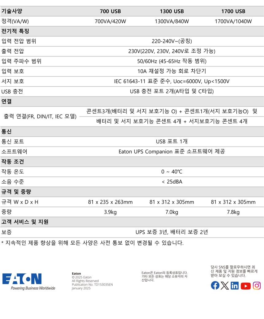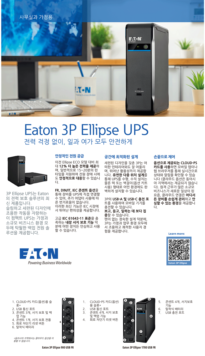 Ellipse 3P 1700 USB DIN 1700VA 1040W 무정전전원장치의