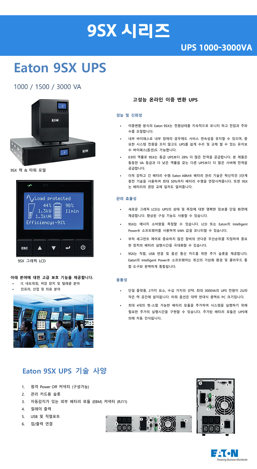 9SX 1500i 1.5kVA 1350W 타워타입 온라인 이중변환 무정전전원장치