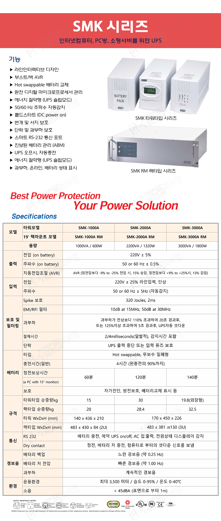 SMK-3000A RM(3U) 3000VA 1800W 랙타입 무정전전원장치 UPS AVR